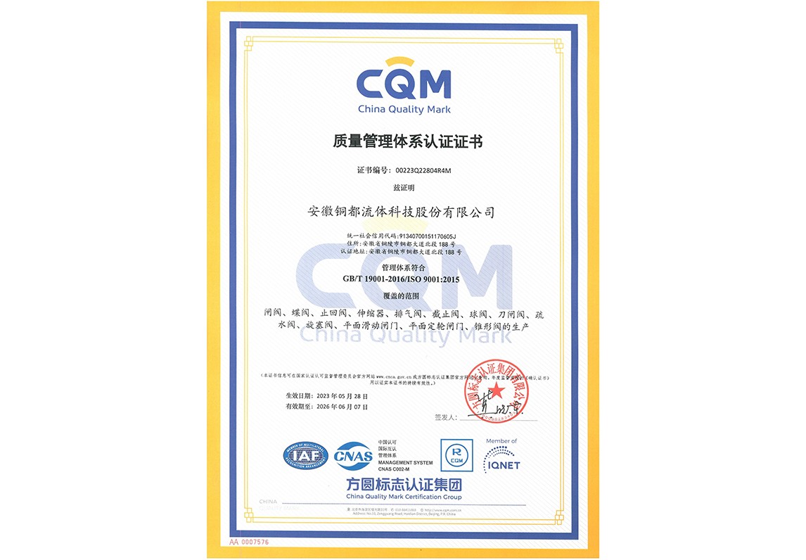 ISO9001質(zhì)量管理體系認(rèn)證證書(shū)