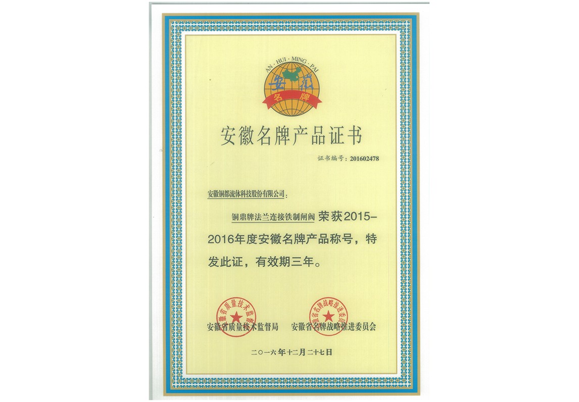 閘閥-名牌產(chǎn)品證書(shū)