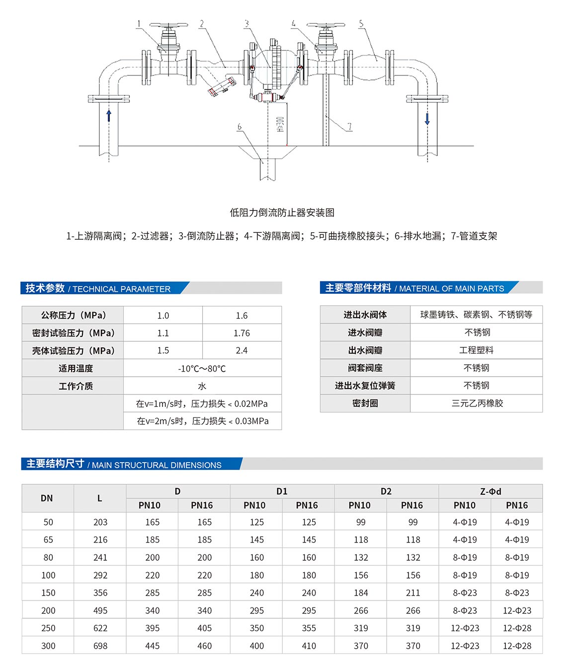 倒流防止器是由兩個相互獨立的止回閥和中間減壓腔內一個獨立的水力差動式泄水閥構成,三個內部閥門除共用閥體外,無任何機械上的聯(lián)系,可靠性較高, 是一種具有限定管道中的壓力水只能單向流動的新型水力控制組合裝置,具有防止倒流污染和虹吸倒流污染的功能,此倒流防止器為市政管網(wǎng)的供水安全提供了合理的解決方案,倒流防止器可廣泛應用于城鎮(zhèn)自來水管網(wǎng)、各種水系統(tǒng)及具有回流污染的場所。例如用于高層建筑的供水系統(tǒng)、生活飲用水與中水系統(tǒng)、消防供水系統(tǒng)、空調制水系統(tǒng)、噴灌灑水系統(tǒng)、工業(yè)取用水系統(tǒng)、醫(yī)療供水系統(tǒng)等,也可用于無負壓設備的配套安裝,防止不潔凈的水回流到主水管的現(xiàn)象發(fā)生,保證生活飲用水的衛(wèi)生與安全。