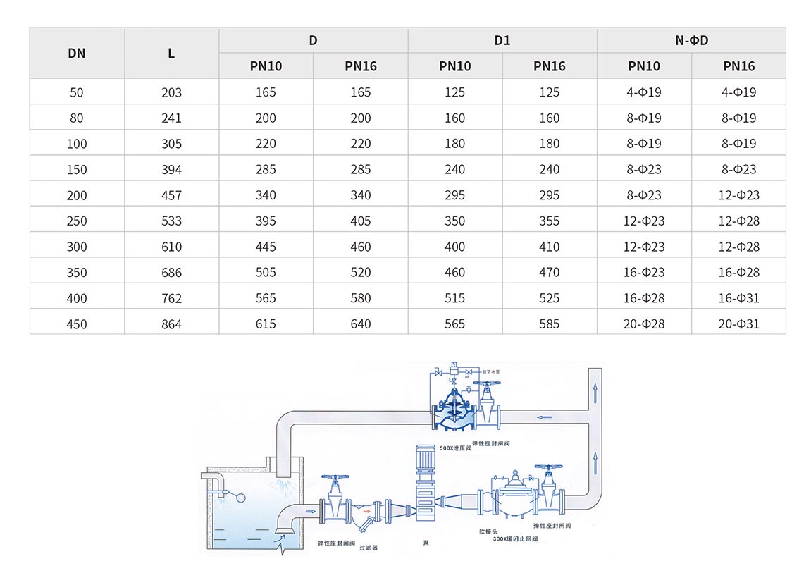 500X泄壓/持壓閥主要用于消防或其他供水系統(tǒng)中,以防止系統(tǒng)超壓或維持消防供水系統(tǒng)的壓力。消防泵關(guān)閉后還可以減小水錘的沖擊。也用于大型供水系統(tǒng)的水錘消除裝置,并且閥門(mén)控制系統(tǒng)的進(jìn)口處裝有一個(gè)自清潔濾網(wǎng),利用流體特性,使比重較大、直徑較大的懸浮顆粒不會(huì)進(jìn)入控制系統(tǒng),確保系統(tǒng)循環(huán)暢通無(wú)阻,使閥門(mén)能安全可靠地運(yùn)行。系統(tǒng)動(dòng)作平穩(wěn)、強(qiáng)度高、使用壽命長(zhǎng)適用于DN600口徑以下的管道。