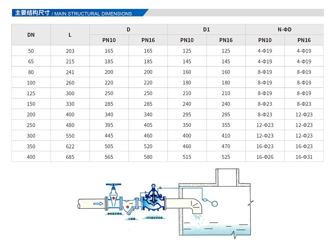 該閥門能有效地控制水塔或水箱液面,適時切斷或打開閥芯輸入水充或阻止水流外泄。液位控制準,水位不受壓力波動干擾,開團緊密不漏水,浮球靈活,維護保養(yǎng)簡單(控制球閥可與主閥分離安裝),適用于工礦,企業(yè),高層建筑中的水箱,水池,水塔的自動供水系統(tǒng)。